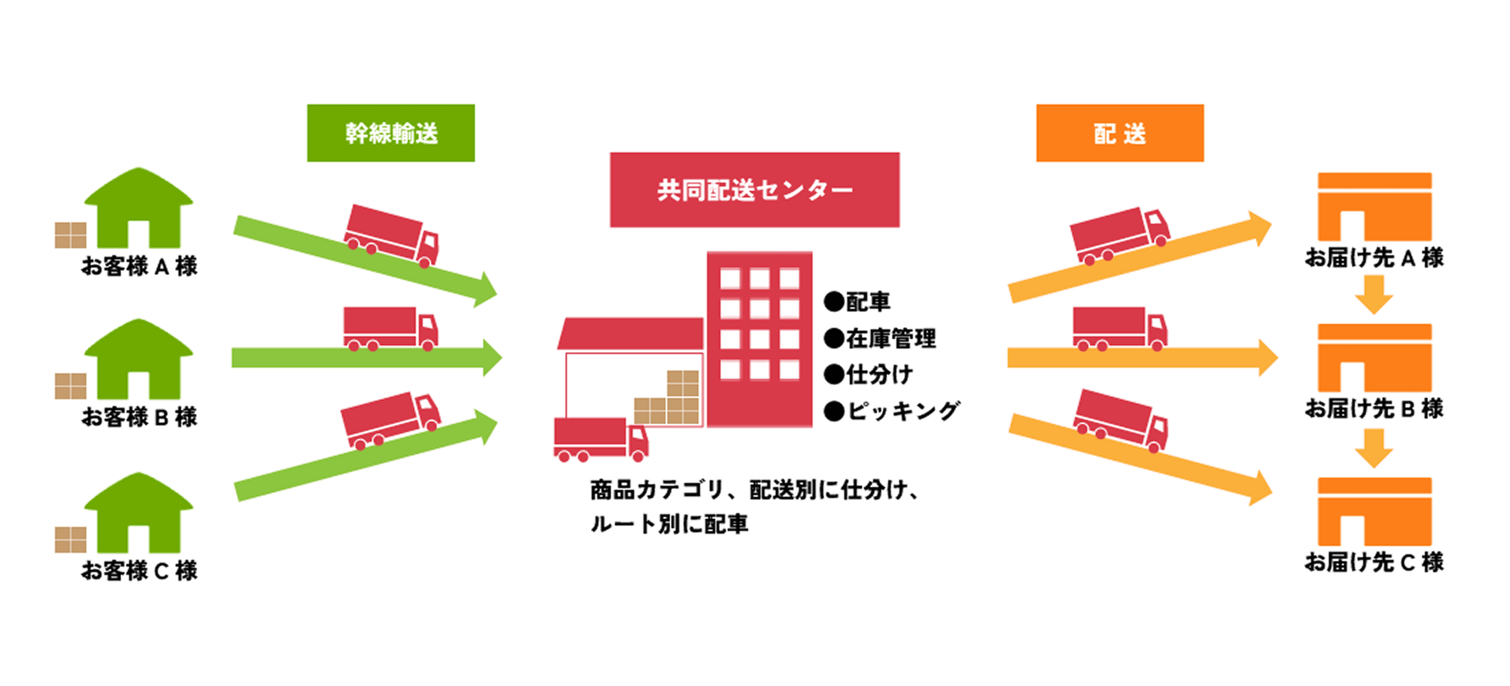 共同配送とは、複数の荷主の貨物を1台のトラックに集約して配送する仕組みで、物流業界でも注目されている取り組みです。