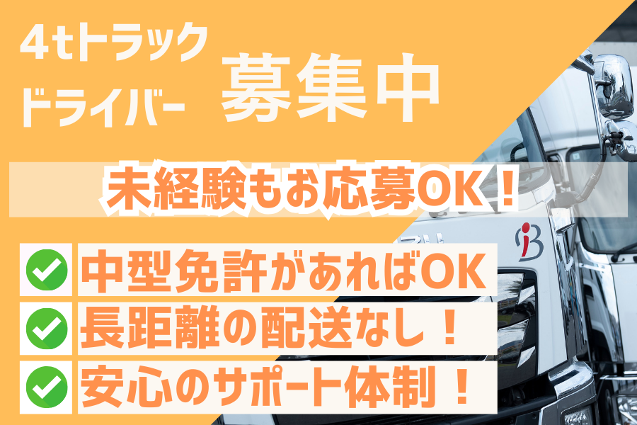 長距離なしの県内配送!4tドライバ―/正社員