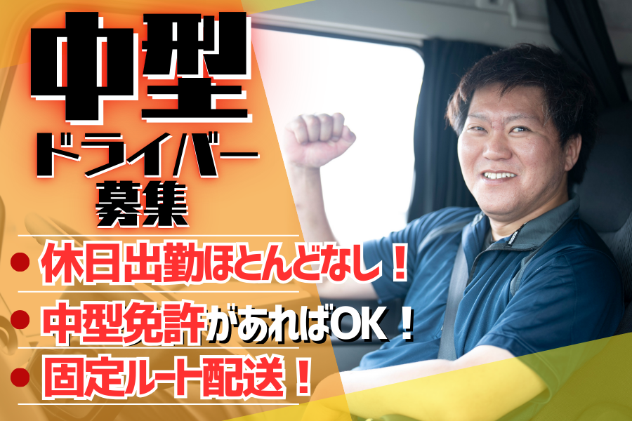 休日出勤ほぼなし!日勤のみの固定ルート配送!中型ドライバー(正社員)