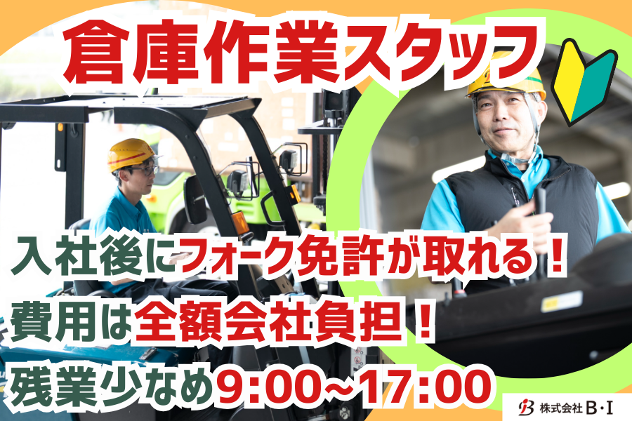 【フォークリフト免許取得は入社後でOK!】倉庫作業スタッフ